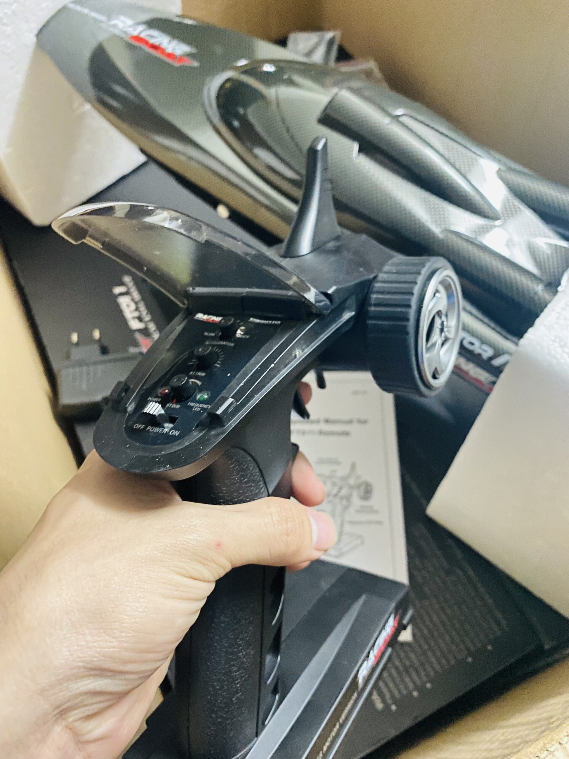 – Servo lái cực khỏe, có thể tăng giảm độ nhạy của servo bằng núm điều chỉnh trên tay điều khiển.