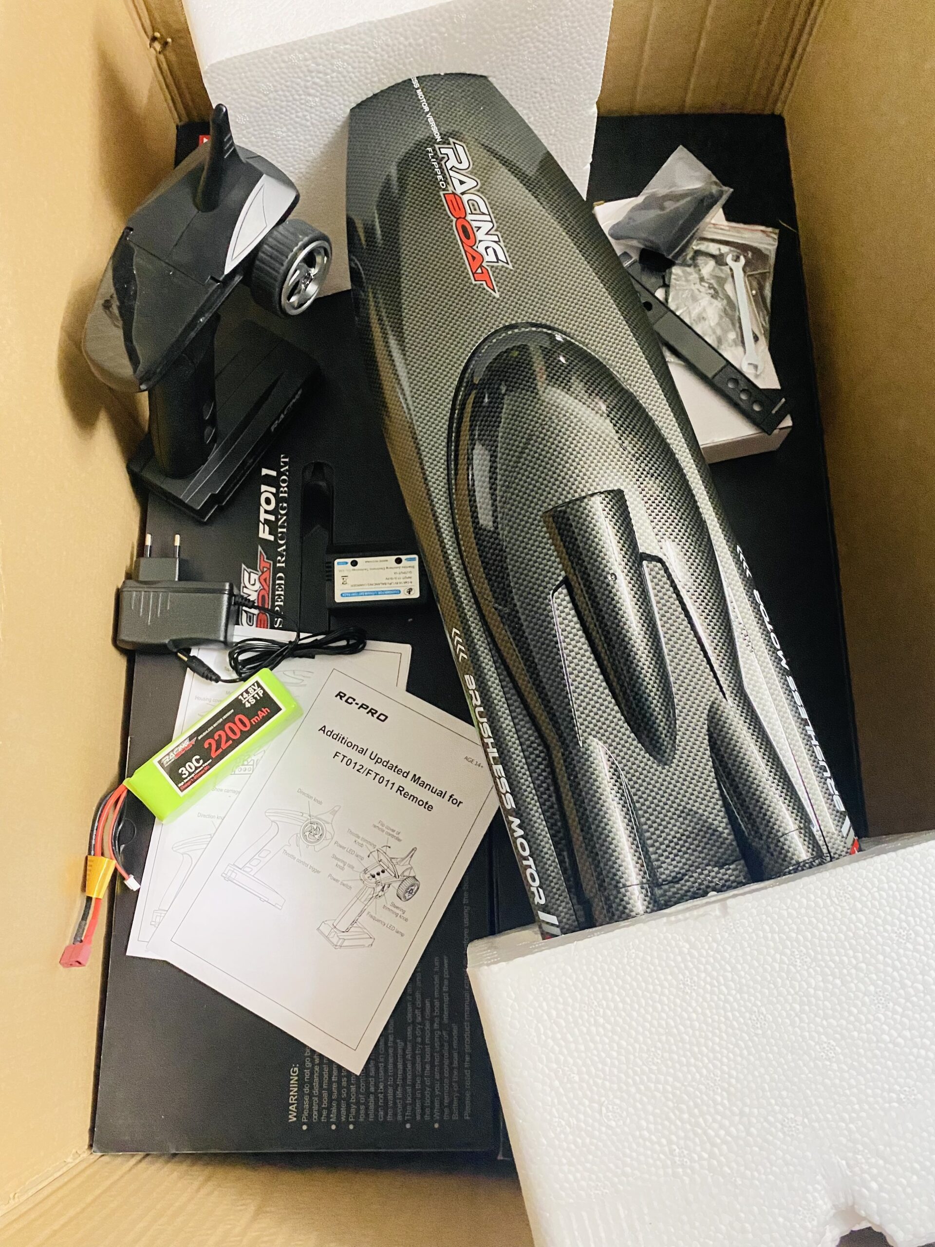 Đóng gói Cano điều khiển từ xa FT011 bao gồm: