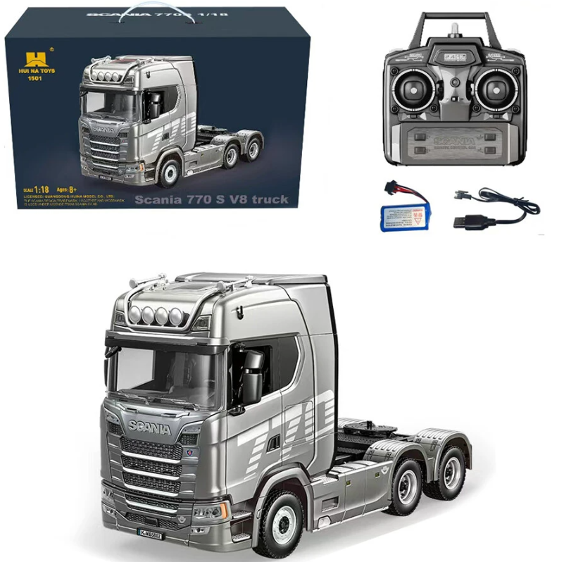 Mô tả xe ô tô tải đầu kéo Huina 501 Scania 770S V8 19CH 2.4G 6wd RC Alloy Engineering Truck Model
