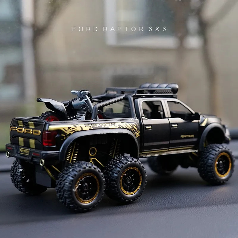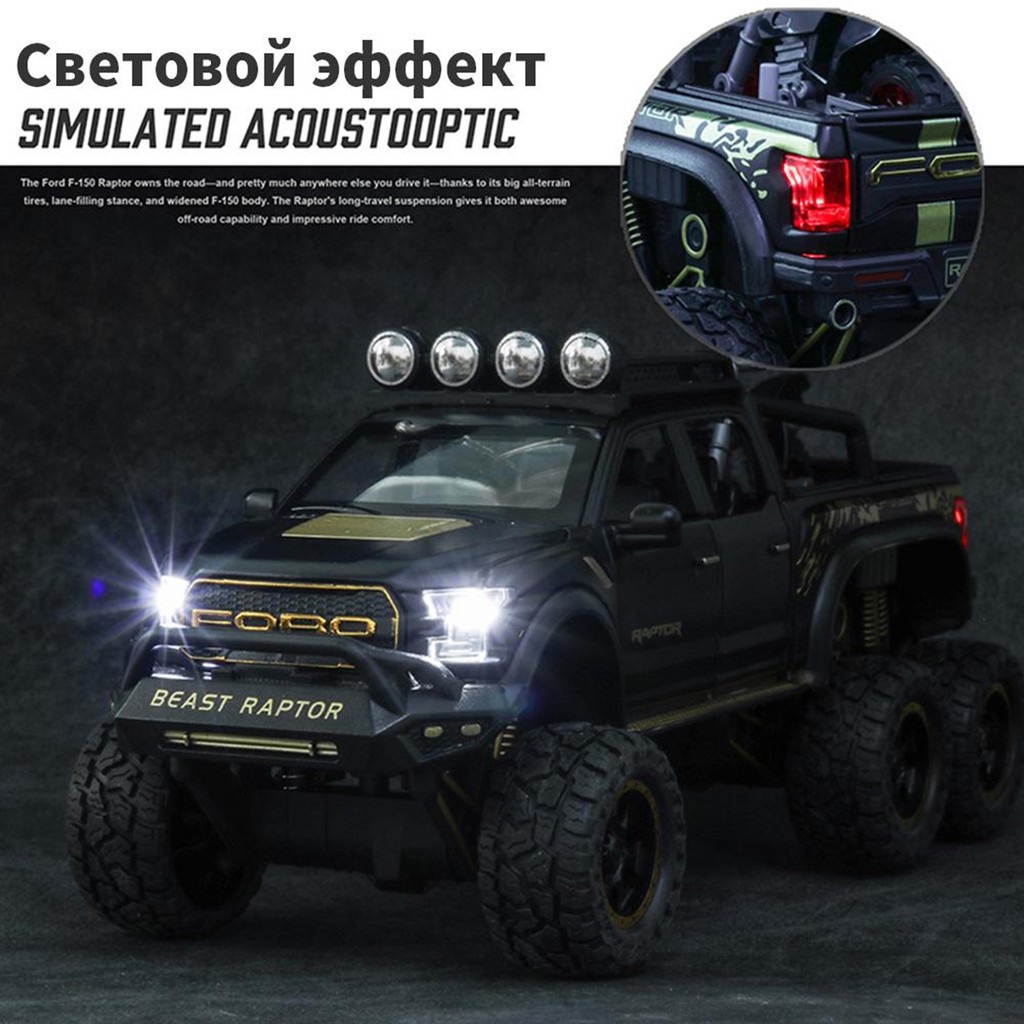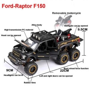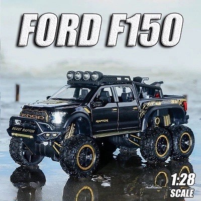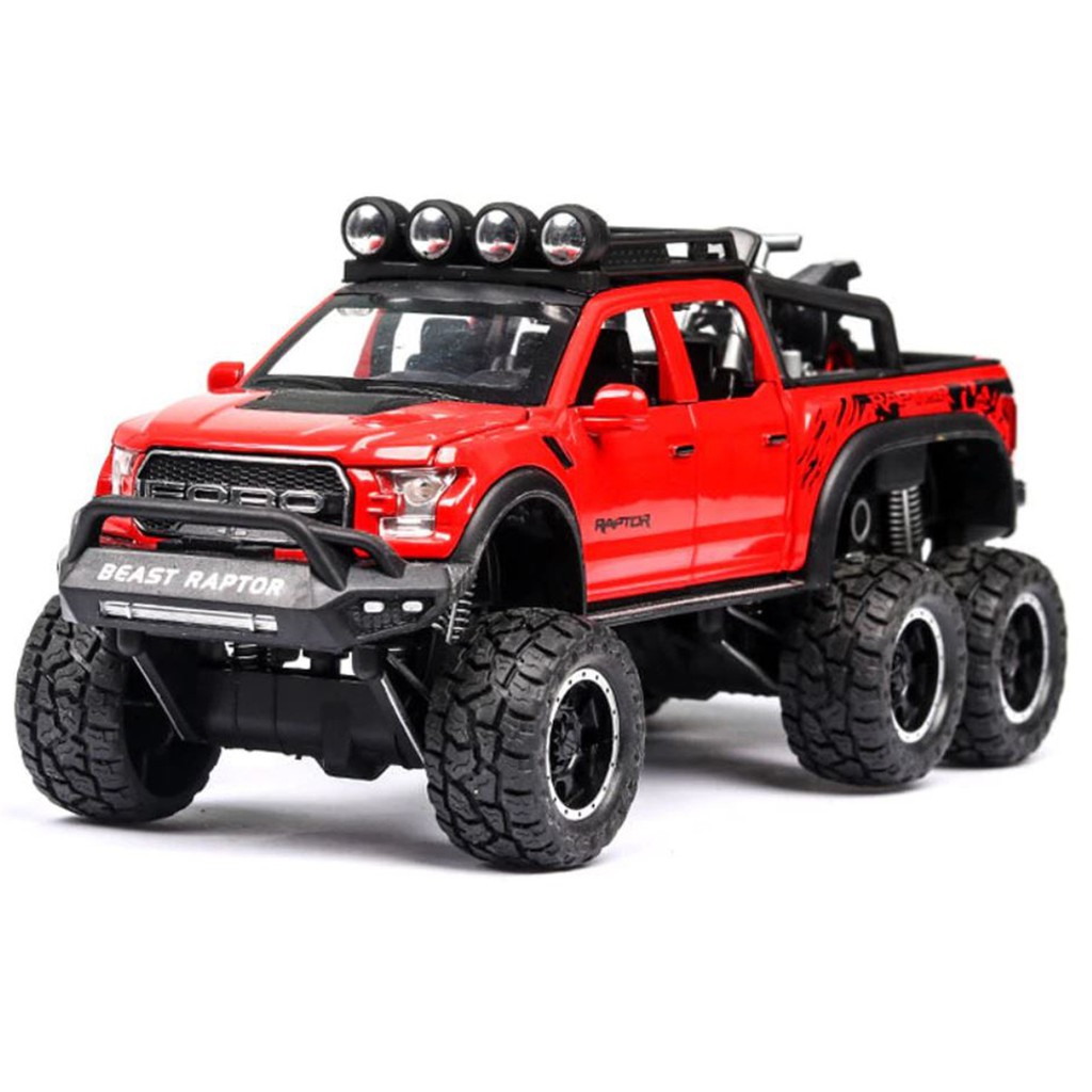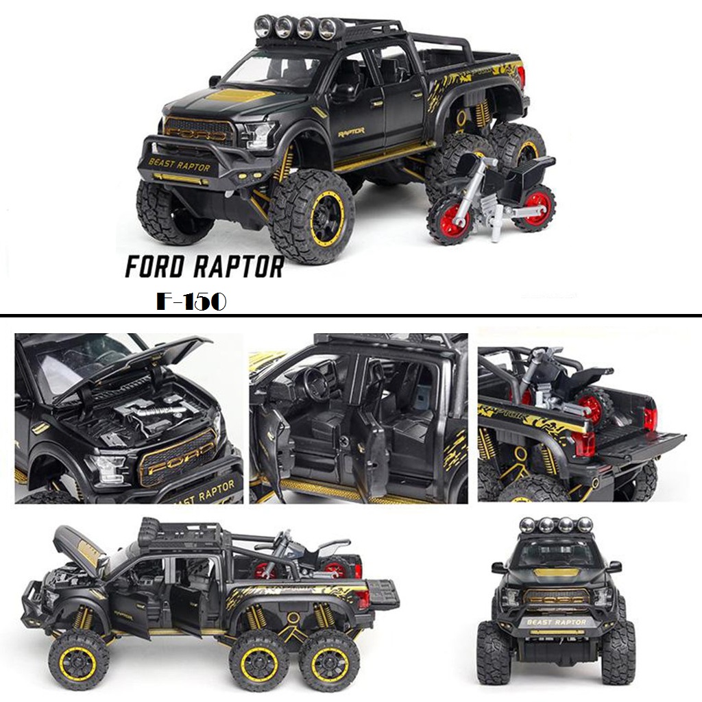 MÔ HÌNH XE BÁN TẢI FORD VELOCI RAPTOR F150 OFFROAD 1:28, Figure kim loại có đèn led và âm thanh, đồ chơi trưng bày