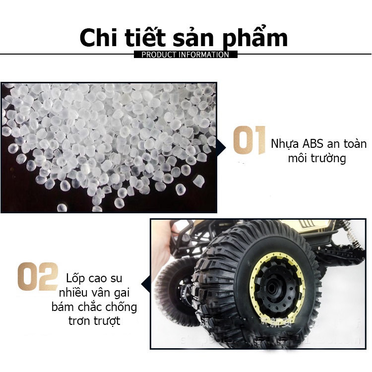 + 4 bánh dẫn động và hệ thống 4 lò xo giảm xóc riêng biệt, lốp bằng cao su mềm nhiều gai giúp xe chống chịu mọi va đạp và bám vào đường tốt hơn, thích hợp mọi địa hình như bê tông, cát, sỏi, đường nhựa
