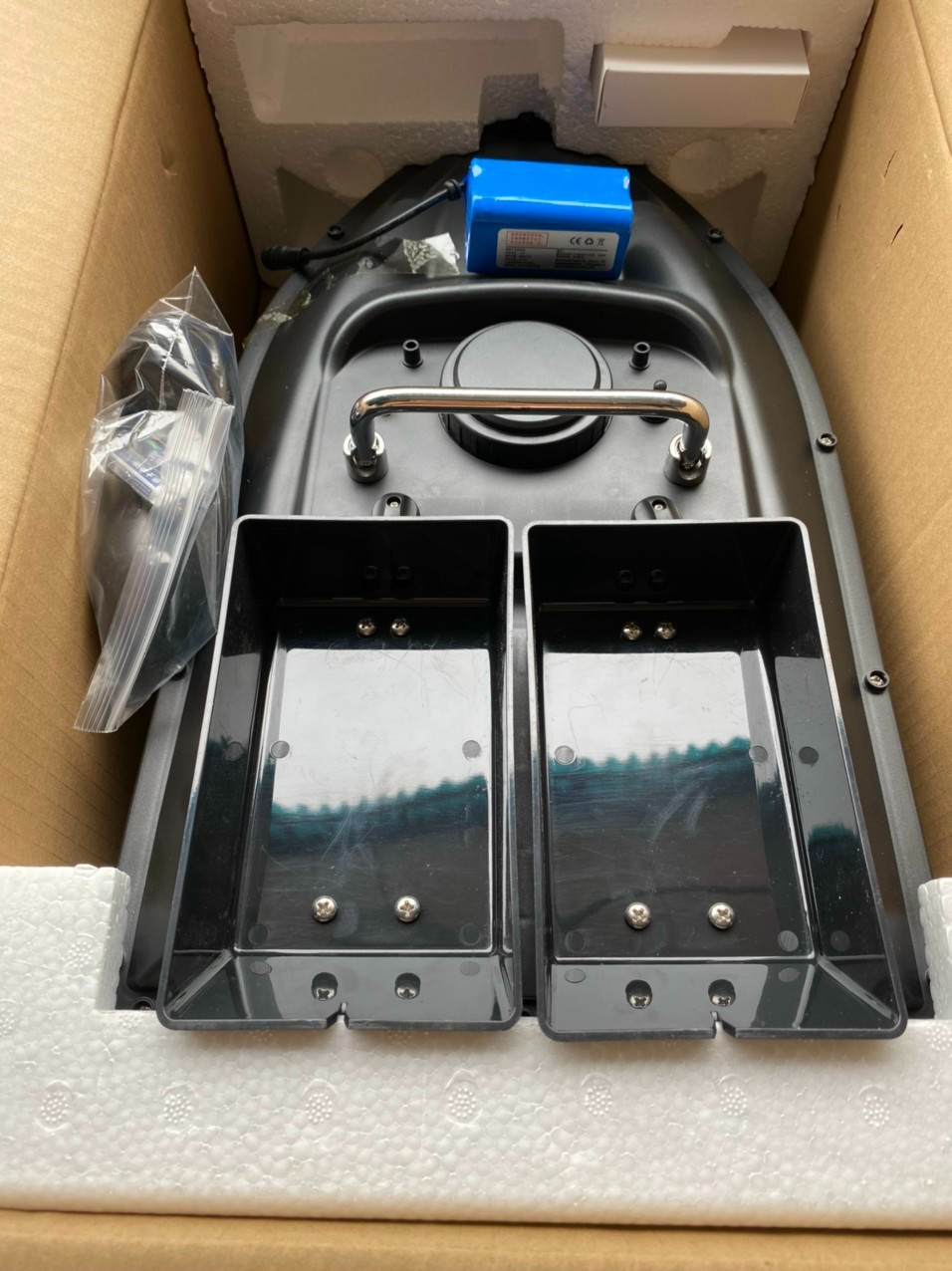 - Tàu thả thính 2 ben (2 cối) loại pin 5200mah – tải trọng 1,5 kg mồi, sóng điều khiển xa xa 500m, 2 đèn pha, có vạch báo pin, pinn dùng liên tục trong vòng 3-4 tiếng.