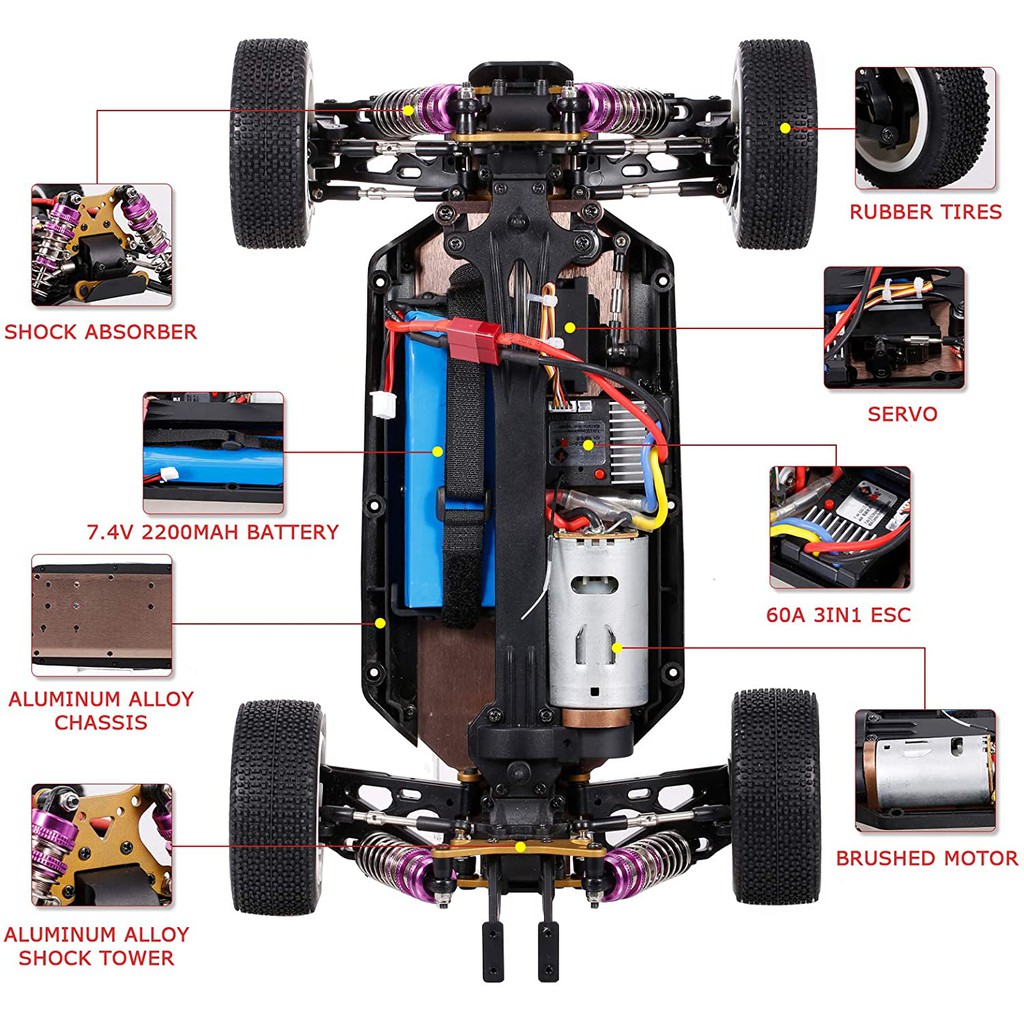 – Các linh kiện trên Wltoys 124019 được cố định chắc chắn, mô tơ 550 mạnh mẽ, đảm bảo tốc độ siêu cao cho xe